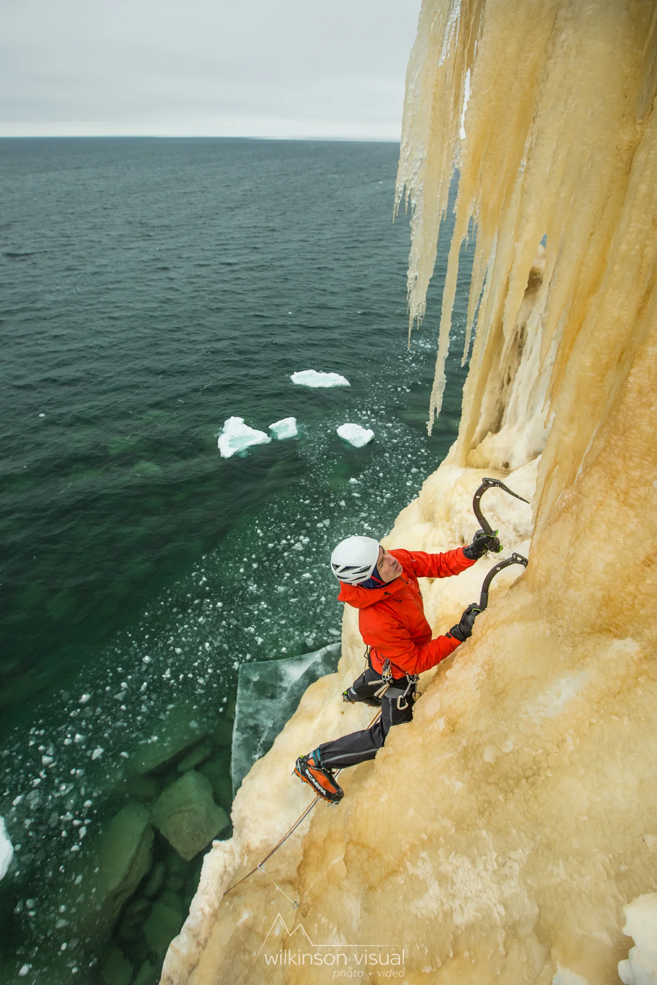 Select images of athletes Raphael Slawinski, Sam Elias, and BD employee Jon Jugenheimer ice climbing at Pictured Rocks National Lakeshore in Northern Michigan. All images available in high resolution. Please contact mike@wilkinsonvisual.com for licensing inquiries.